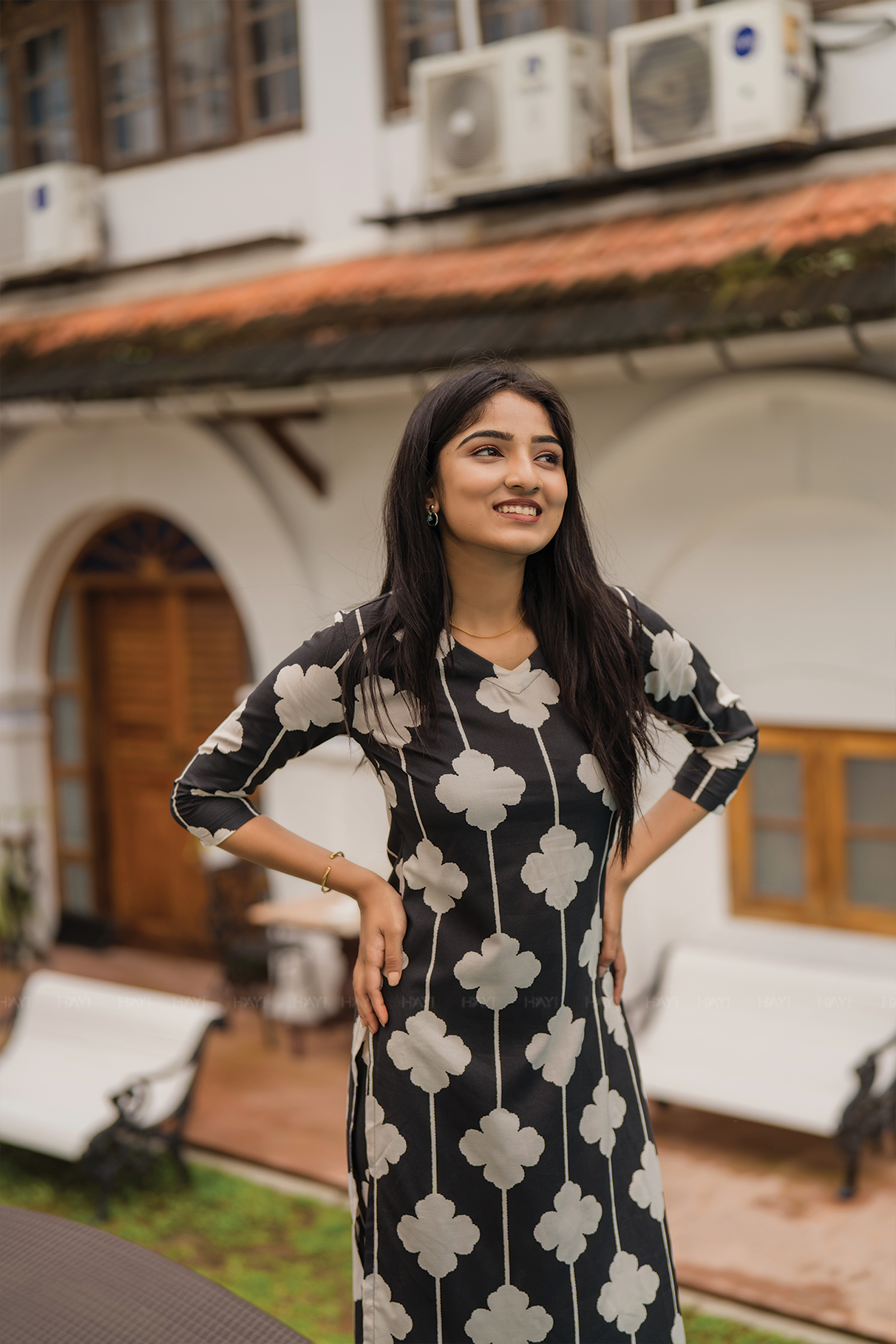 Brighten up your festive wardrobe with this Black Blushstem Co-ords set for effortless elegance. The bold black base is uplifted with white floral-inspired prints, adding a chic and contemporary vibe to your look.