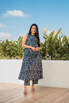 • Design: Sleeveless A-line kurta paired with matching printed pants