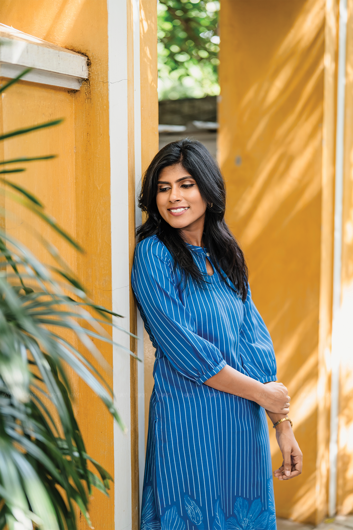 Bring refined sophistication to your daily style with the Sapphire Grace Co-ords set. Featuring a graceful vertical stripe pattern with botanical border accents, this set combines structure and elegance with its A-line silhouette and gathered cuff detailing.