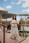 • Design: Tiered maxi dress with nature-inspired motifs and free-flowing silhouette