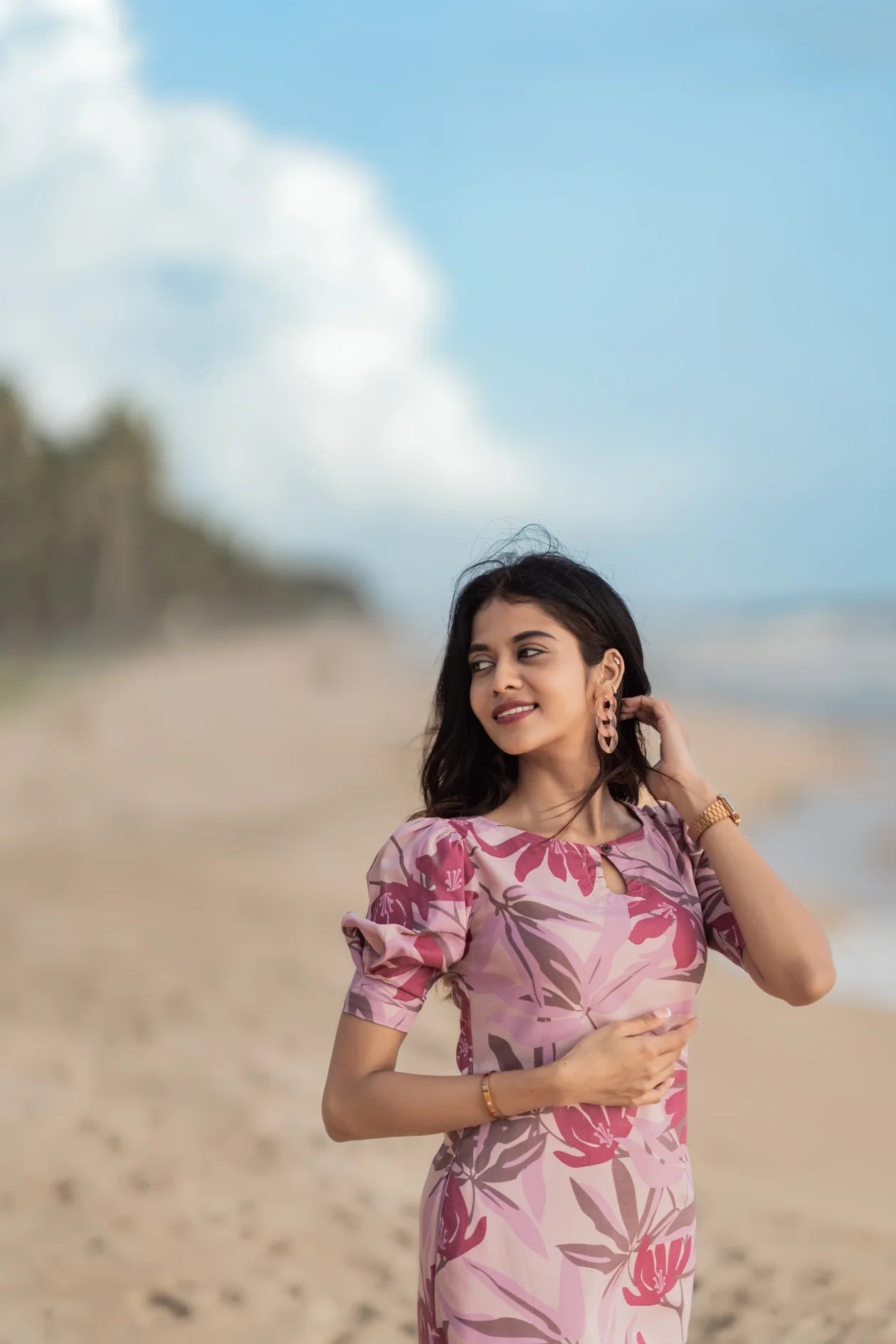- Indulge in the elegance of our "We bring blossoms" dress. Featuring delicate puff sleeves and a short hand design, this luxurious piece is perfect for any occasion. Embrace the beauty of blooming flowers with every step, making a statement as unique and enchanting as you.