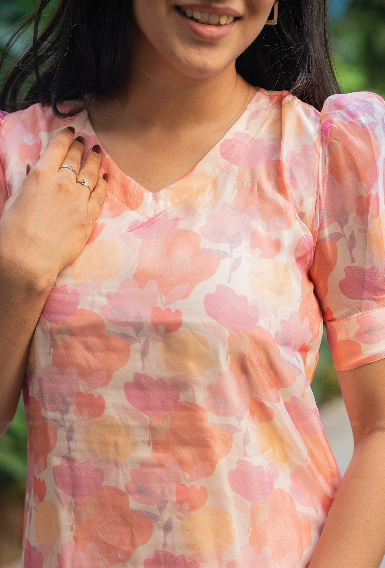 Soft florals, everyday charm – this peach-pink floral printed kurta brings a refreshing blend of femininity and comfort, perfect for your sunny-day plans.