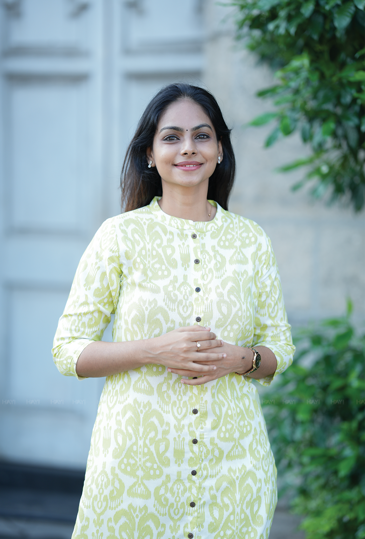 Radiate fresh elegance in this soothing green-hued set – blending traditional motifs with a contemporary straight-cut silhouette for all-day sophistication.