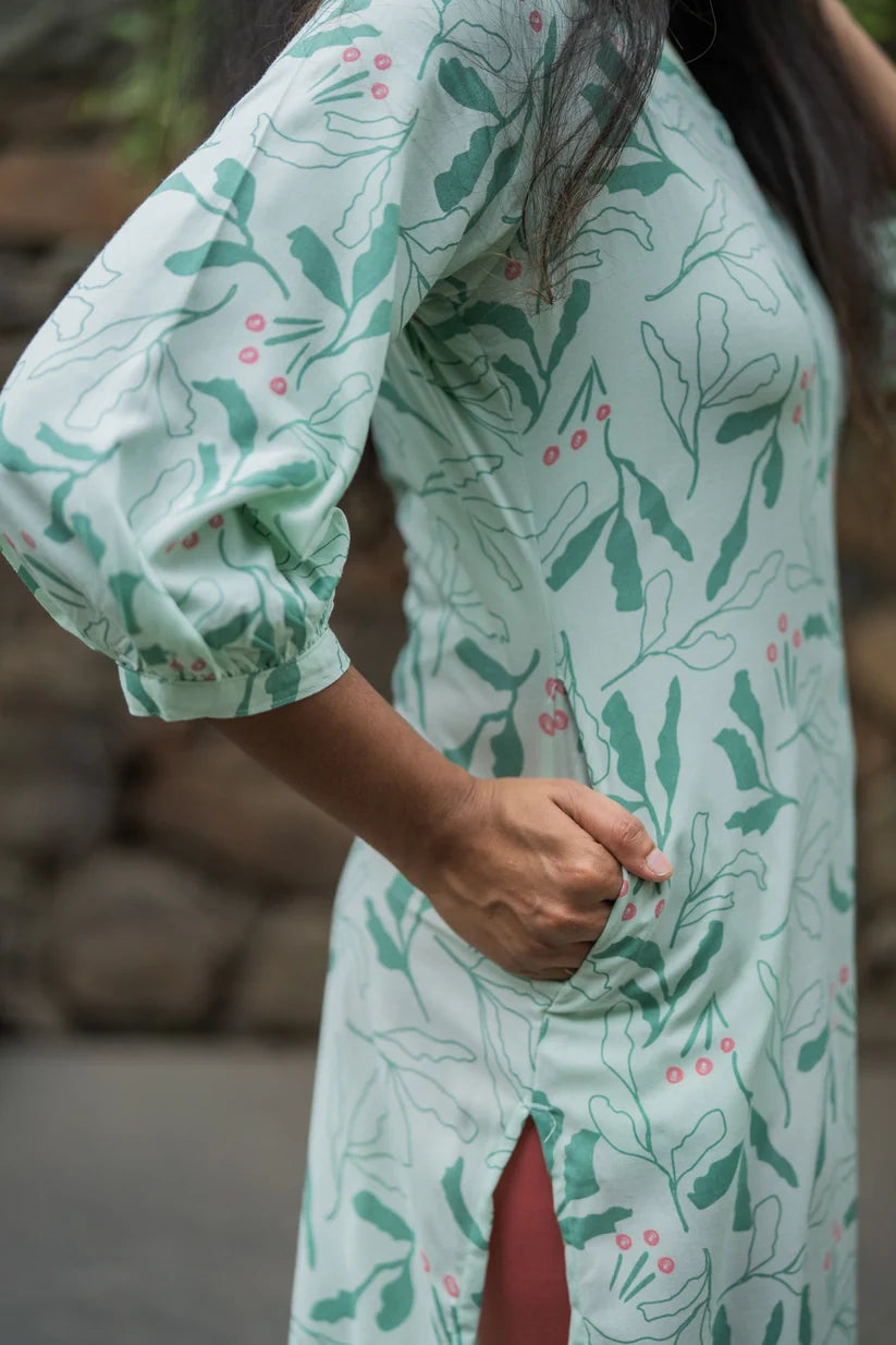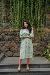 Burnished Green with Forest Desire floral printed Linen Blend Dress