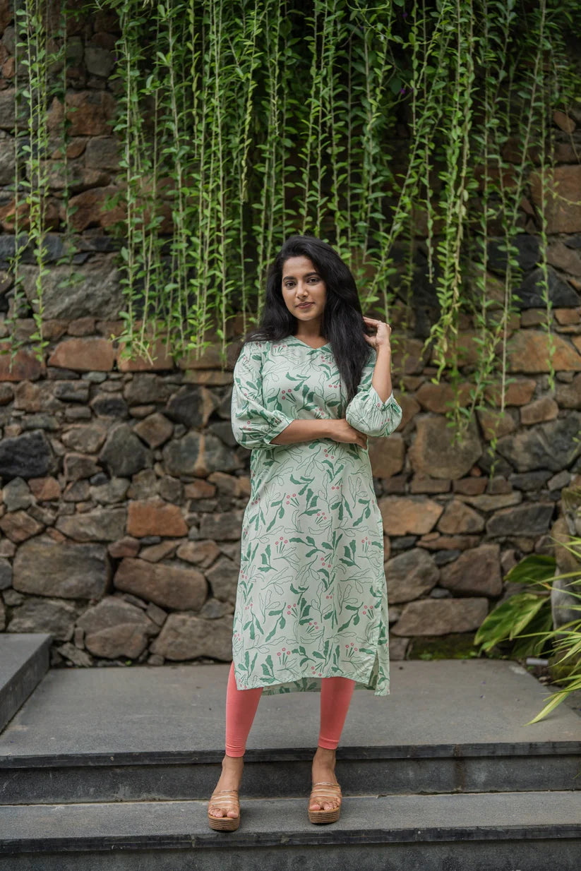 Cadence Green with Metropolitan Rhythm floral Printed Linen Blend Co-ords