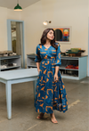 Celestial Dream Blue Cotton Dress with Rounded Square Neck