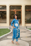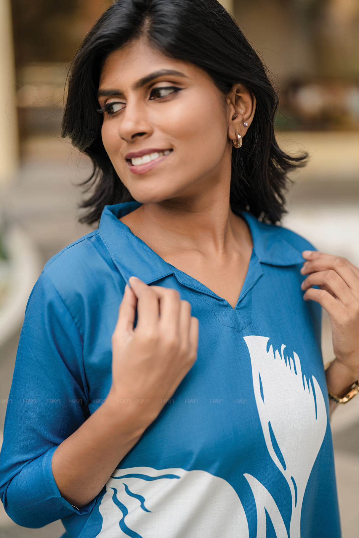 Step into timeless elegance with this Blue Moonbloom Stride Co-ords set for an easy, graceful drape. The deep blue base is enhanced with bold white floral placement prints, creating a striking yet sophisticated look.