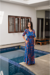 Bring a refreshing vibe to your wardrobe with the Tropic Tale Maxi Dress. The deep blue base is uplifted with vibrant tropical-inspired prints in striking orange, making it a perfect choice for both casual outings and relaxed festive wear.